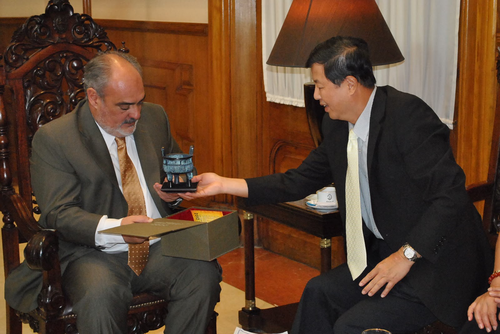 El embajador de la República Popular de China, Zeng Gang, junto a su esposa Liu Linge, fueron recibidos este jueves por la mañana en el Salón Verde de Casa de Gobierno, por los ministros del Ejecutivo provincial, los cuales detallaron la situación de cada uno de sus ministerios y conversaron sobre posibles convenios entre la provincia y el país oriental.